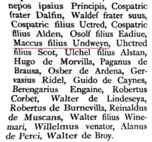 (Cospatric等)のものが見えるが、何語なのか良く解らない名も混じっている。実はここで問題となっているMaccus filius Undweyn